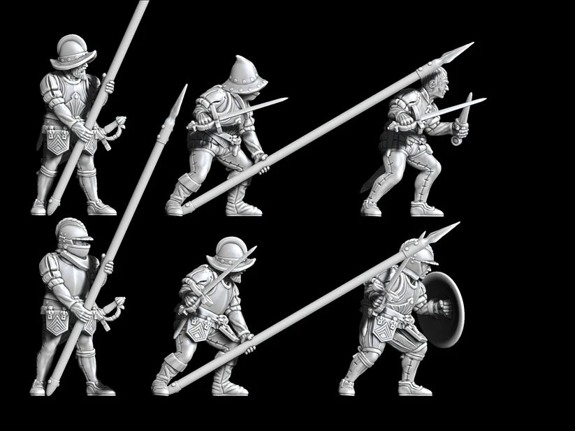 Sculpted by the incomparable Erramir Orlan of Peculiar Companions, these Spanish Pikemen are intended for armies from the 15th and 16th Centuries. This set of six 3D models comes with two poses in six variations, with a variety for weapon options. All models come as both pre-supported and unsupported STL files.